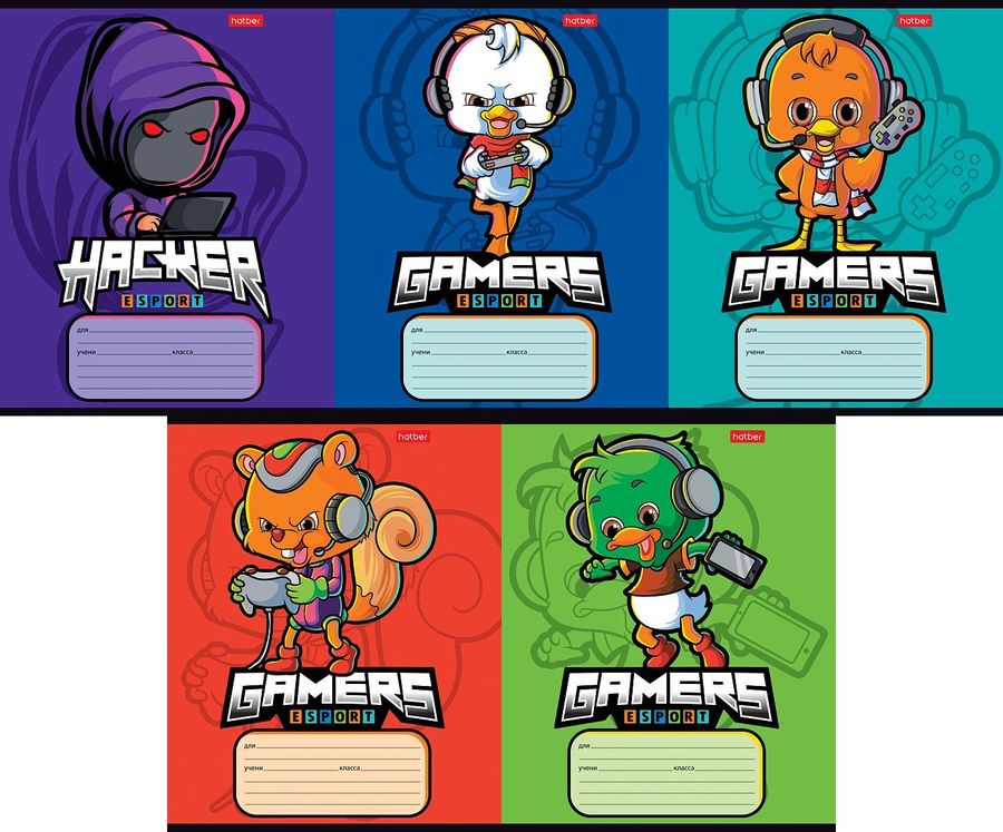 Тетрадь А5 12л линия мелов.картон Геймеры ассорти 5 дизайнов HATBER 12Т5В2