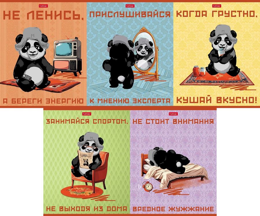 Тетрадь А5 48л клетка скрепка мелов.картон Мудрая панда ассорти 5 дизайнов HATBER 48Т5В1