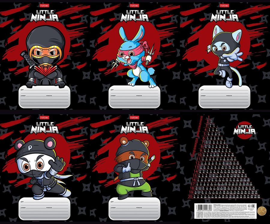 Тетрадь А5 18л клетка скрепка мелов.картон Маленькие ниндзя ассорти HATBER 18Т5В1