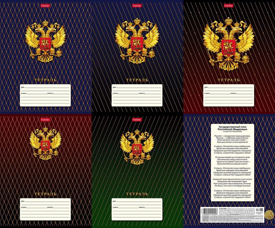 Тетрадь А5 18л клетка скрепка мелов.картон Россия с гимном ассорти HATBER 18Т5В1