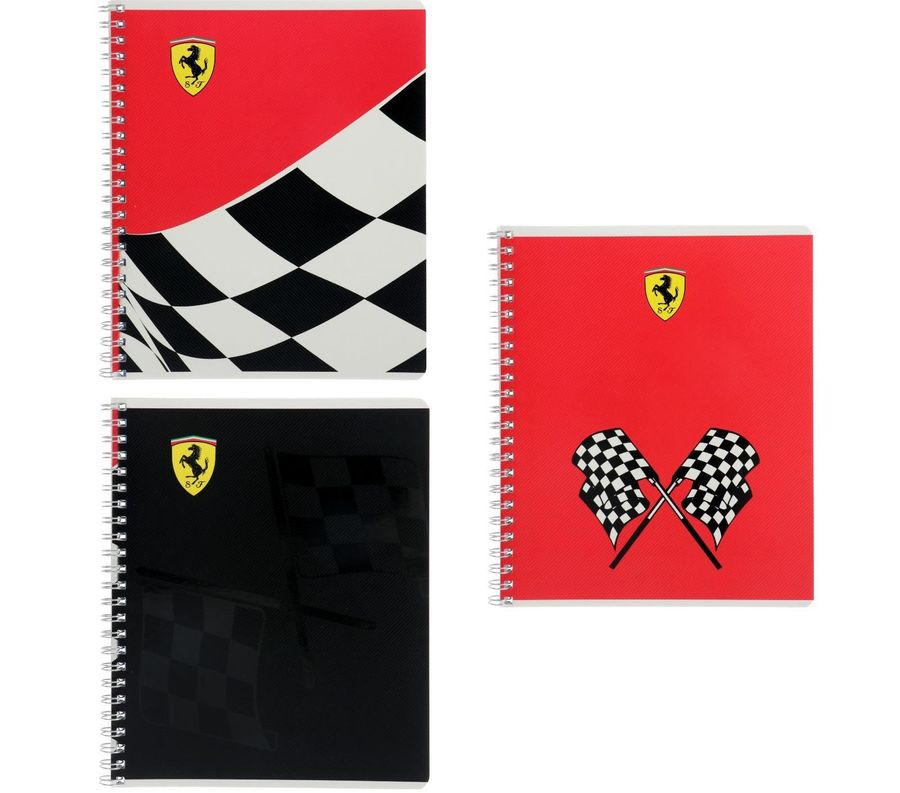 Тетрадь 48 листов в клетку на гребне Ferrari, обложка мелованный картон, двойной УФ-лак, блок офсет, МИКС