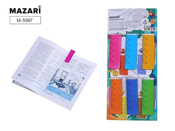 Набор из шести магнитных закладок с линейкой. Размер закладки: 12х2 см. Ассорти, 6 цветов. Материалы: картон, пластик, магнит. Не рекомендуется детям до 3 лет. Производитель: Китай
