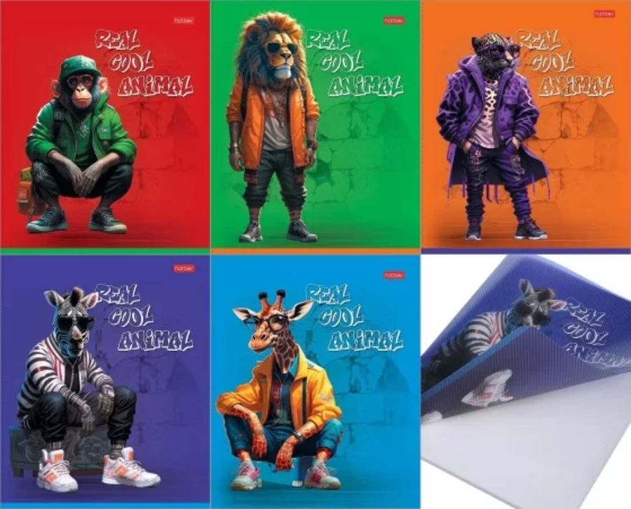 Тетрадь А5 48л клетка скрепка пласт.обл. Cool Animals тиснение ассорти HATBER 48Т5В1пл