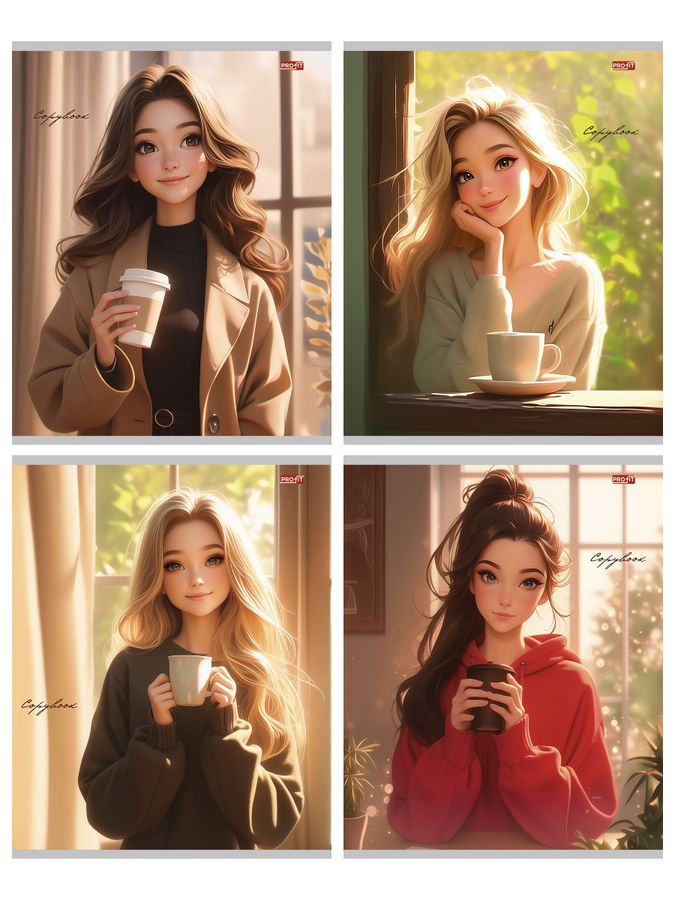 Тетрадь А5 96л клетка скрепка мелов.картон Девушки с кофе ассорти PROFIT 96-9526