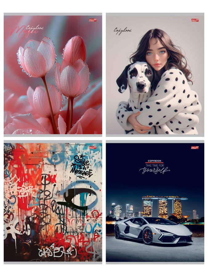 Тетрадь А5 96л клетка скрепка мелов.картон Микс-9528 ассорти PROFIT 96-9528