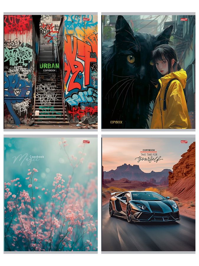 Тетрадь А5 96л клетка скрепка мелов.картон Микс-9529 ассорти PROFIT 96-9529