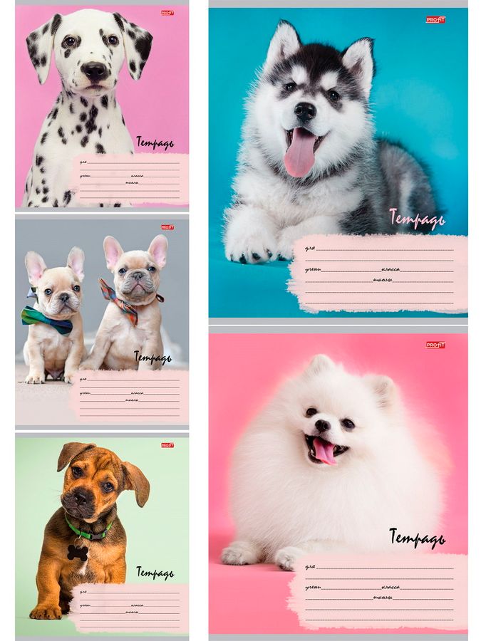 Тетрадь А5 12л косая линия с доп.гориз. обл.мелов.бум. Милые щенки ассорти 5 диз. PROFIT 12-5569
