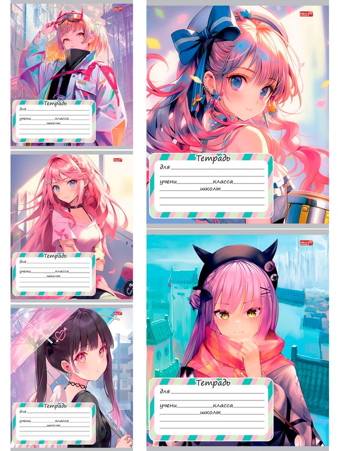 Тетрадь А5 12л косая линия обл.мелов.бум. Девушка в стиле аниме ассорти 5 диз. PROFIT 12-5565