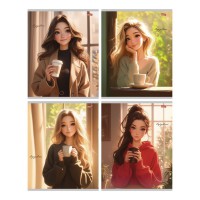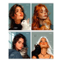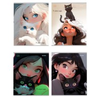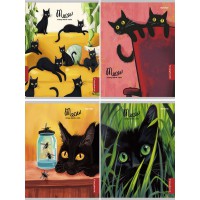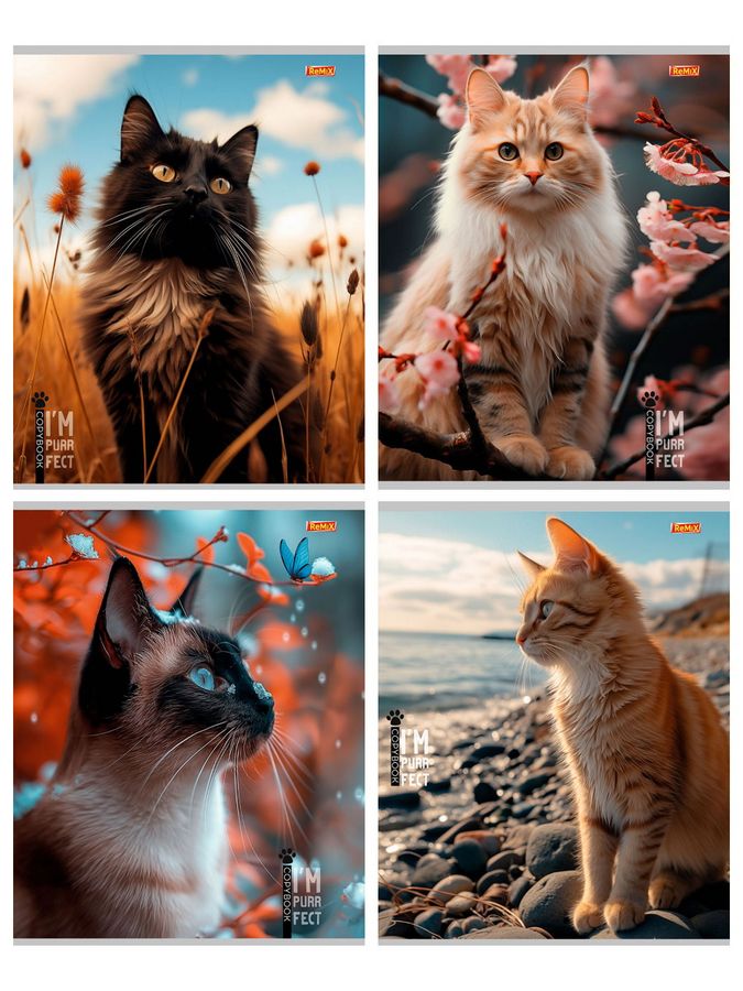 Тетрадь А5 96л клетка скрепка мелов.картон Коты и природа 2 блок ассорти Remix 96-9531