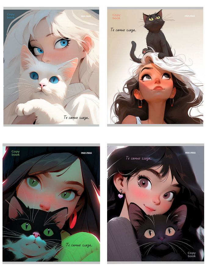 Тетрадь А5 96л клетка скрепка мелов.картон Девушки и коты лен ассорти PROF-PRESS 96-8843