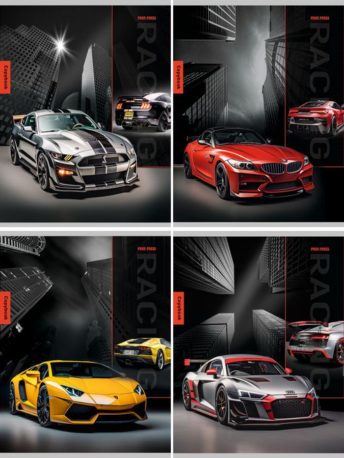 Тетрадь А5 96л клетка скрепка мелов.картон двойная Разные автомобили-1 ассорти PROF-PRESS 96-8432