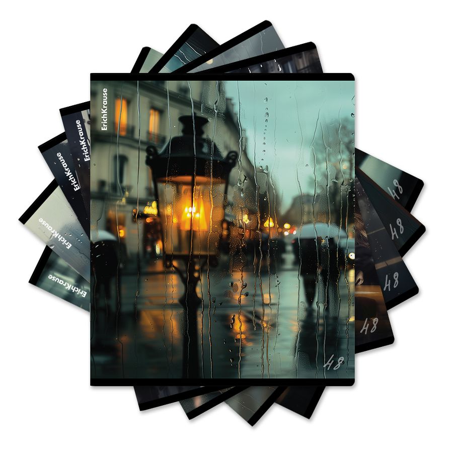 Тетрадь общая ученическая формата А5+ (170х203 мм). Обложка из высококачественного мелованного картона плотностью 190 г/м2. Отделка - глянцевая ламинация. В блоке 48 листов в клетку с полями. Бумага офсетная плотностью 60 г/м2. Цвет линовки - синий. Скругленные уголки обложки и блока. Тип скрепления - скоба. Тетради разного дизайна упакованы в термоусадочную пленку по 5 штук.