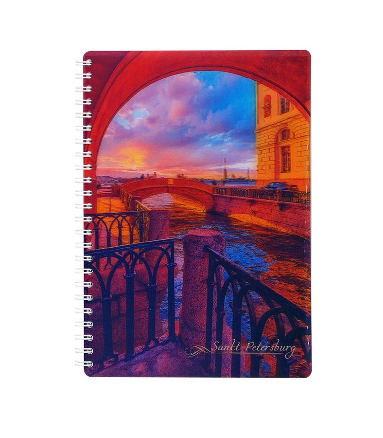 Тетрадь А5 80л клетка гребень пласт.обл. Атмосферный Петербург Питерские каналы 3D ПОЛИНОМ 3428
