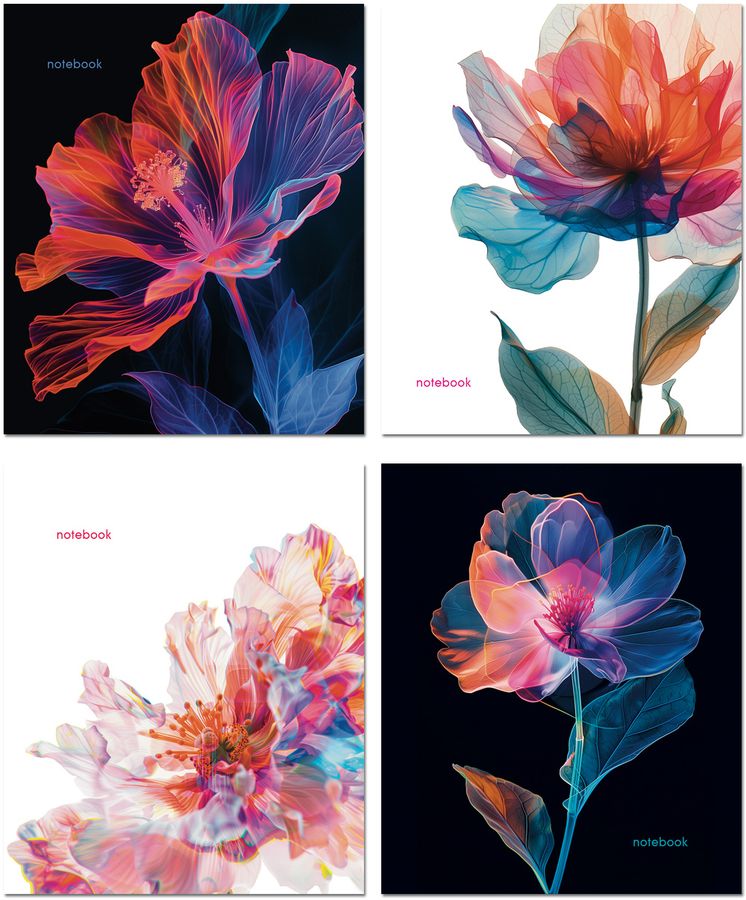Тетрадь А5 48л клетка скрепка мелов.картон Цветы УФ-лак ассорти 4 диз. ПОЛИНОМ 3450