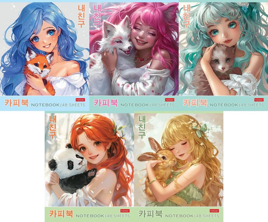 Тетрадь А5 48л клетка скрепка мелов.картон Милый друг лам. soft touch 5 диз. HATBER 48Т5лВ1