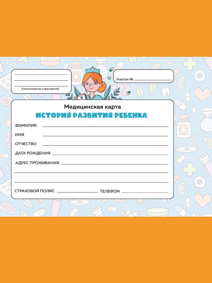 Медицинская карта необходима с рождения каждому малышу. Наша карта составлена по стандартной форме 112/у История развития ребенка и содержит разделы для сведений о новорожденном, профилактических осмотрах, диагнозах, вакцинации и многом другом, а также большое количество дополнительных страниц. Благодаря твёрдой обложке и удобной резинке карта прослужит долгие годы, сохранив аккуратный вид.