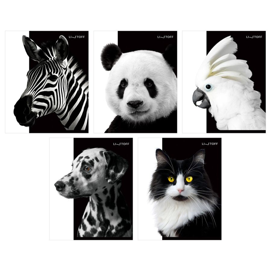 Тетрадь А5 48л клетка скрепка мелов.картон Черно-белые животные ассорти Listoff ТК489106