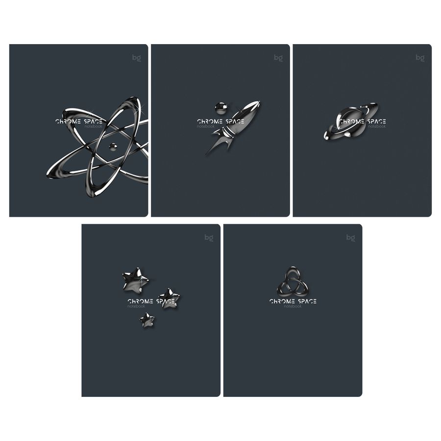 Тетрадь BG серии "Chrome". Формат А5 (165*205 мм). Вид крепления – скоба. Внутренний блок – это 48 листов, офсетная бумага плотностью 60 г/м². Обложка выполнена из мелованного картона. Тетради отлично подходят для выполнения домашних и контрольных работ.
