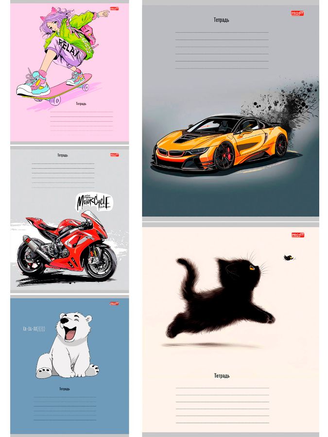 Тетрадь А5 12л клетка обл.мелов.бум. МИКС-4283 ассорти 5 диз. PROFIT 12-4283