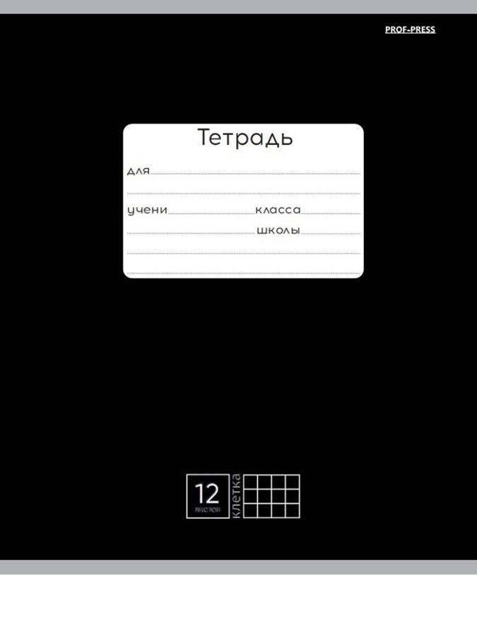 Тетрадь А5 12л клетка обл.мелов.бум. Однотон Класссика черная PROF-PRESS 12-2545