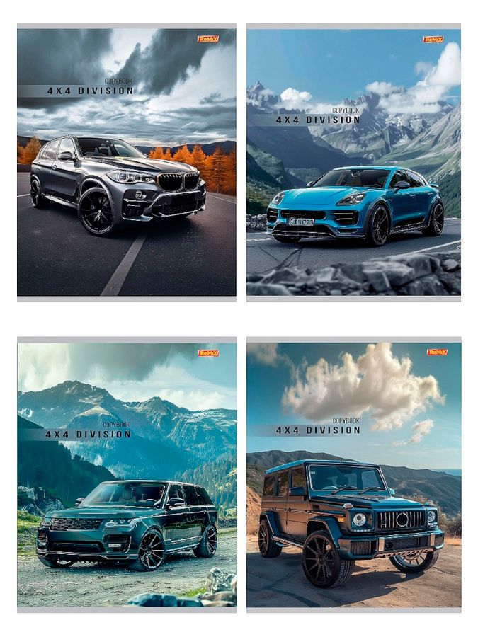 Тетрадь А5 96л клетка скрепка мелов.картон Авто в горах 2 блок ассорти Remix 96-1019