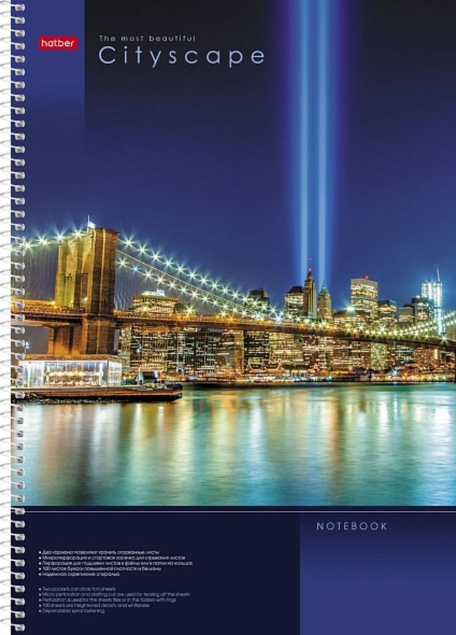 Тетрадь А4 100л клетка гребень мелов.картон CityScape с карманом УФ-лак HATBER 100Ткм4B1сп_12523
