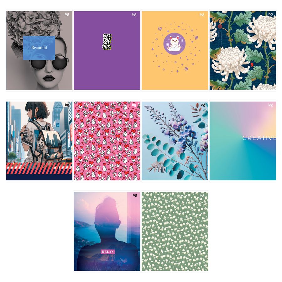 Тетрадь BG серии «Mix» в клетку. Формат А5. Вид крепления – скоба. Внутренний блок – это 96 листов, офсетная бумага плотностью 60 г/м². Обложка выполнена из мелованного картона. Тетради с креативным дизайном отлично подходят для выполнения домашних и классных работ.