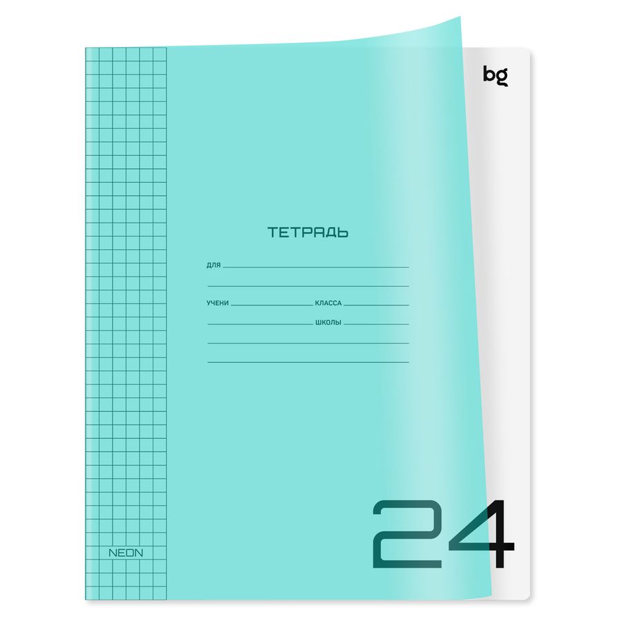 Тетрадь BG серии UniTone. Neon в клетку. Формат А5 (165*205 мм). Вид крепления – скрепка. Внутренний блок – это 24 листа, офсетная бумага плотностью 65 г/м². Обложка выполнена из мягкого полупрозрачного пластика неоново-голубого цвета, также имеется подкладной лист из качественной мелованной бумаги 110 г/м2 для подписи тетрадей. Преимущество таких тетрадей заключается в том, что для сохранения внешнего вида не нужно покупать обложки на тетрадь, т.к. сама обложка тетради выполнена из прочного износостойкого пластика. Тетради с лаконичным дизайном идеально подойдут для школьников любого года обучения.• Кол-во листов: 24 л;• Линовка: клетка;• Белизна: 100%;• Плотность блока: 65 г/м²;• Материал обложки: мягкий полупрозрачный пластик.