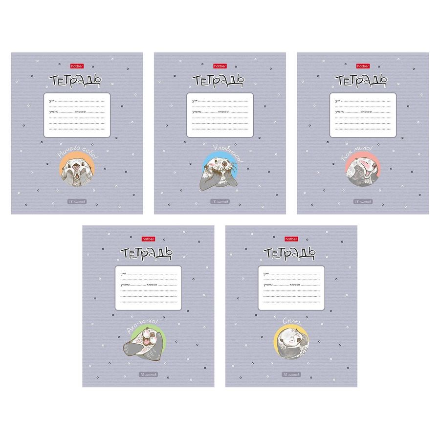 Тетрадь А5 18л клетка скрепка мелов.картон Калан Кеша ассорти 5 диз. HATBER 18Т5В1