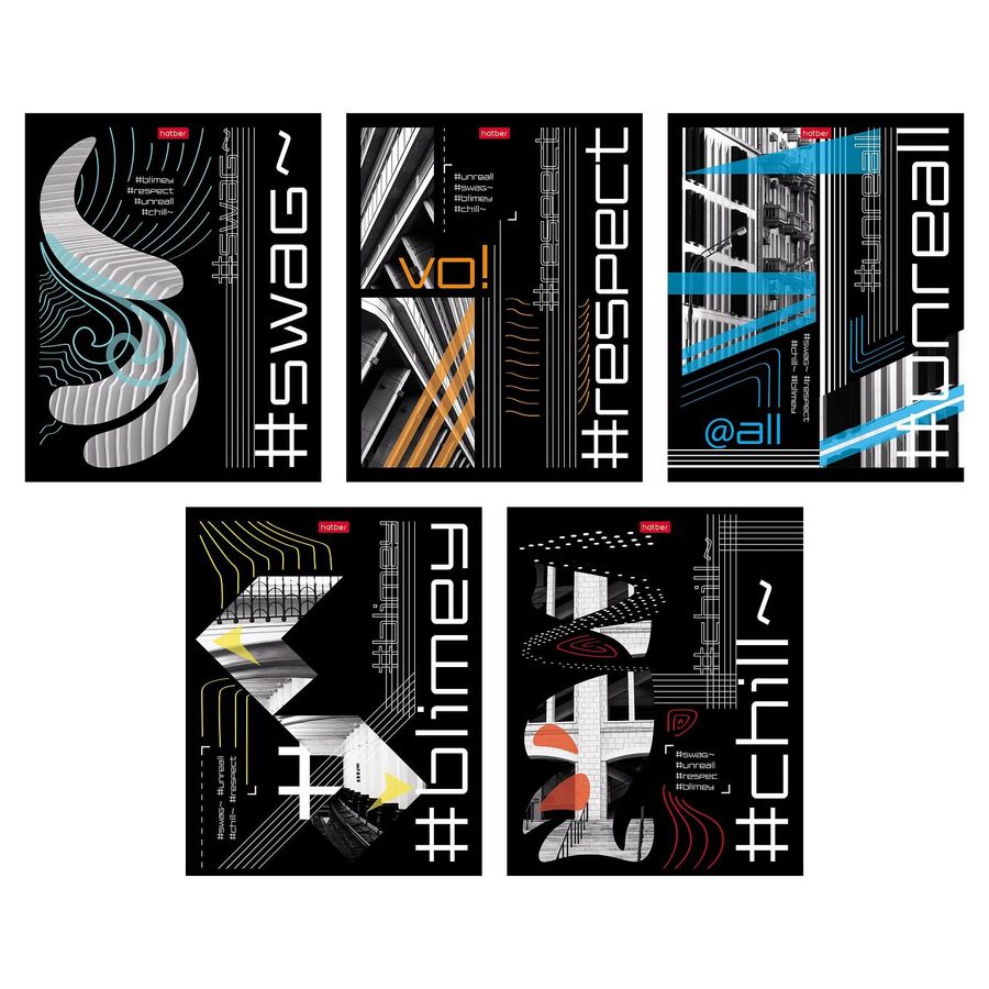 Тетрадь А5 80л клетка скрепка пласт.обл. Хештег ассорти 5 диз. HATBER 80Т5В1пл