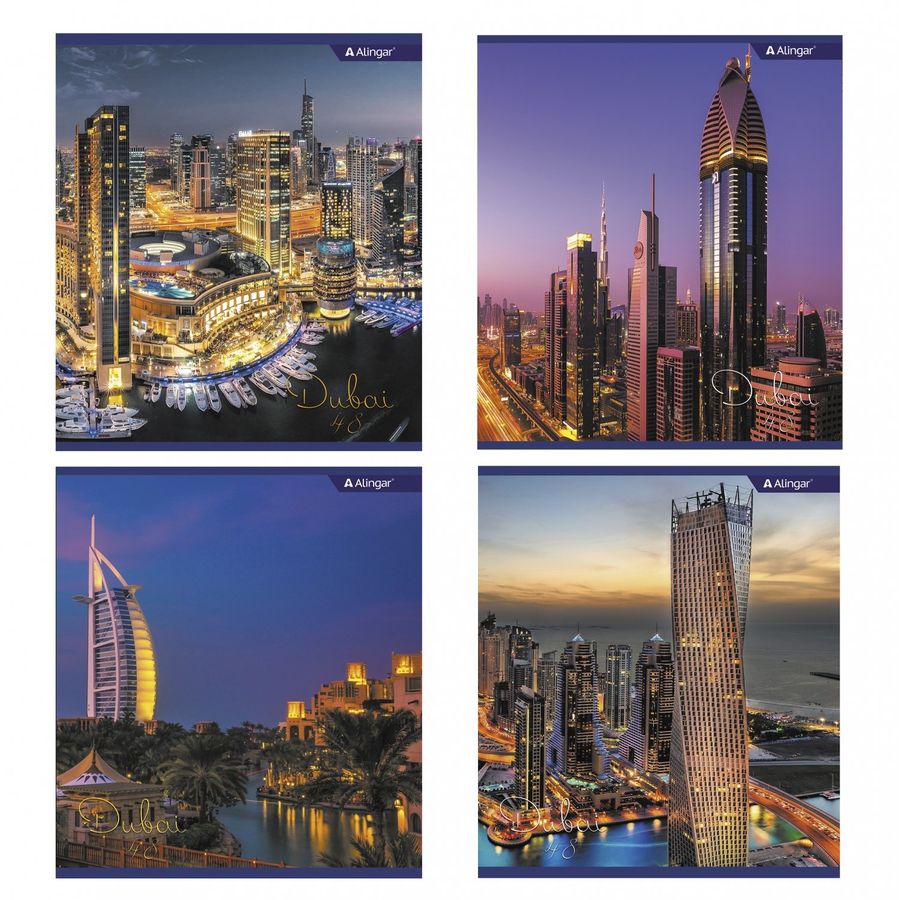 Тетрадь 48л., А5, линия, Alingar "Дубай", скрепка, мелованный картон (стандарт), блок офсет, 4 дизайна в пленке т/у.