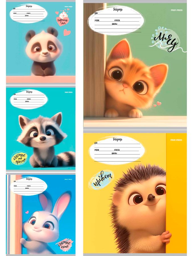 Тетрадь А5 12л косая линия с доп.гориз. обл.мелов.бум. Милые животные-3 ассорти PROFIT 12-4274