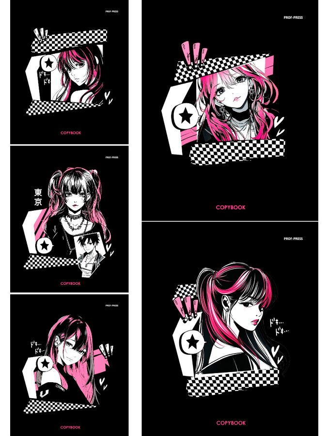 Тетрадь А5 48л клетка скрепка мелов.картон Black anime ассорти PROF-PRESS 48-4305