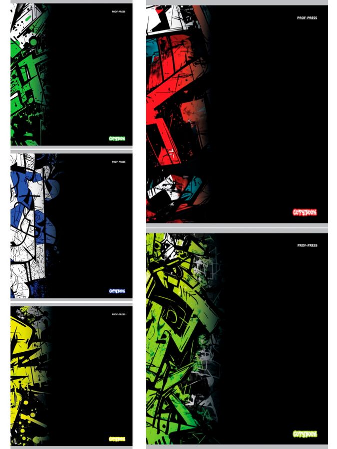 Тетрадь А5 48л клетка скрепка мелов.картон Граффити на черном-2 ассорти PROF-PRESS 48-4301