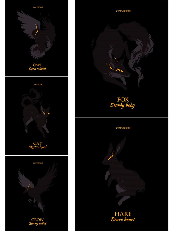 Тетрадь А5 48л клетка скрепка мелов.картон Таинственные животные ассорти Collezione 48-6000