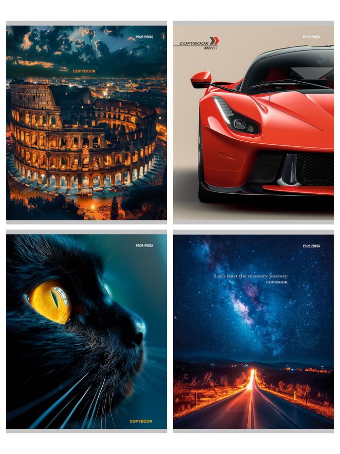 Тетрадь А5 96л клетка скрепка мелов.картон Микс-9521 PROF-PRESS 96-9521
