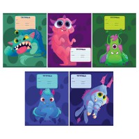 Тетрадь школьная ученическая формата А5+ (170х203 мм). Обложка из высококачественного мелованного картона плотностью 180 г/м2. В блоке 12 листов в косую линейку с полями. Бумага офсетная плотностью 60 г/м2. Цвет линовки - синий. Скругленные уголки обложки и блока. Тип скрепления - скоба. Тетради упакованы в термоусадочную пленку по 10 штук.