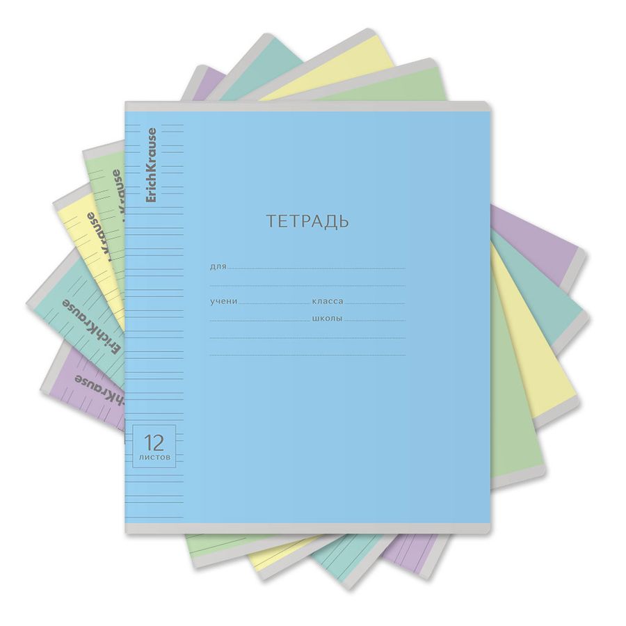Тетрадь школьная ученическая формата А5+ (170х203 мм). Обложка из высококачественного мелованного картона плотностью 180 г/м2. В блоке 12 листов в узкую линейку с полями. Бумага офсетная плотностью 60 г/м2. Цвет линовки - синий. Скругленные уголки обложки и блока. Тип скрепления - скоба. Тетради одного цвета упакованы в термоусадочную пленку по 10 штук. Товар поставляется в нескольких вариантах цвета без возможности выбора.