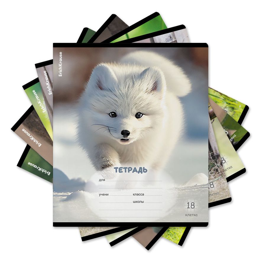 Тетрадь школьная ученическая формата А5+ (170х203 мм). Обложка из высококачественного мелованного картона плотностью 170 г/м2. В блоке 18 листов в клетку с полями. Бумага офсетная плотностью 60 г/м2. Цвет линовки - синий. Скругленные уголки обложки и блока. Тип скрепления - скоба. Тетради разного дизайна упакованы в термоусадочную пленку по 10 штук.