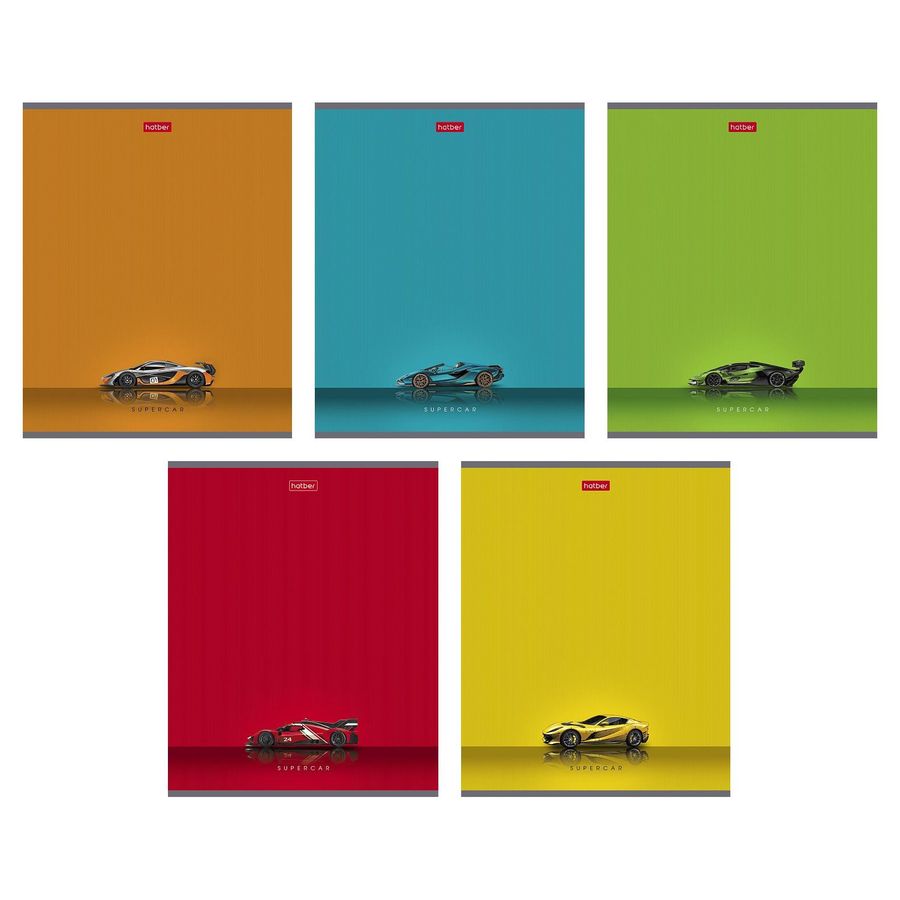 Тетрадь А5 48л клетка скрепка пласт.обл. Гоночные авто 5 дизайнов HATBER 48Т5В1пл