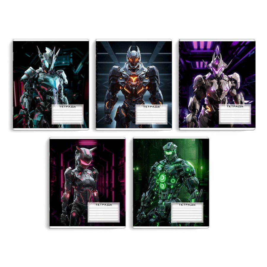 Тетрадь школьная ученическая, 12 л, клетка, арт. 68520/ 10 РОБОТЫ /А5+, мягкий переплёт (2 скобы), обложка - выборочный УФ-лак, мелованный картон 190 г/м², упаковка ассорти.