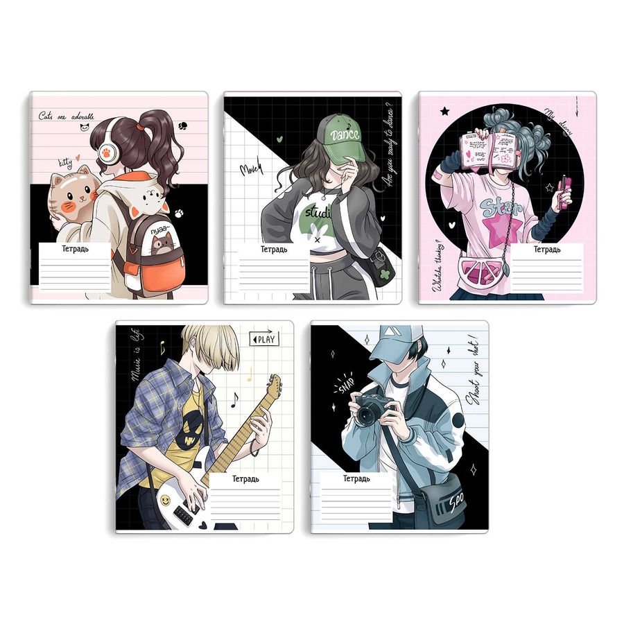 Тетрадь А5 18л клетка скрепка мелов.картон Аниме-подростки выб.УФ-лак ассорти ФЕНИКС+ 68530