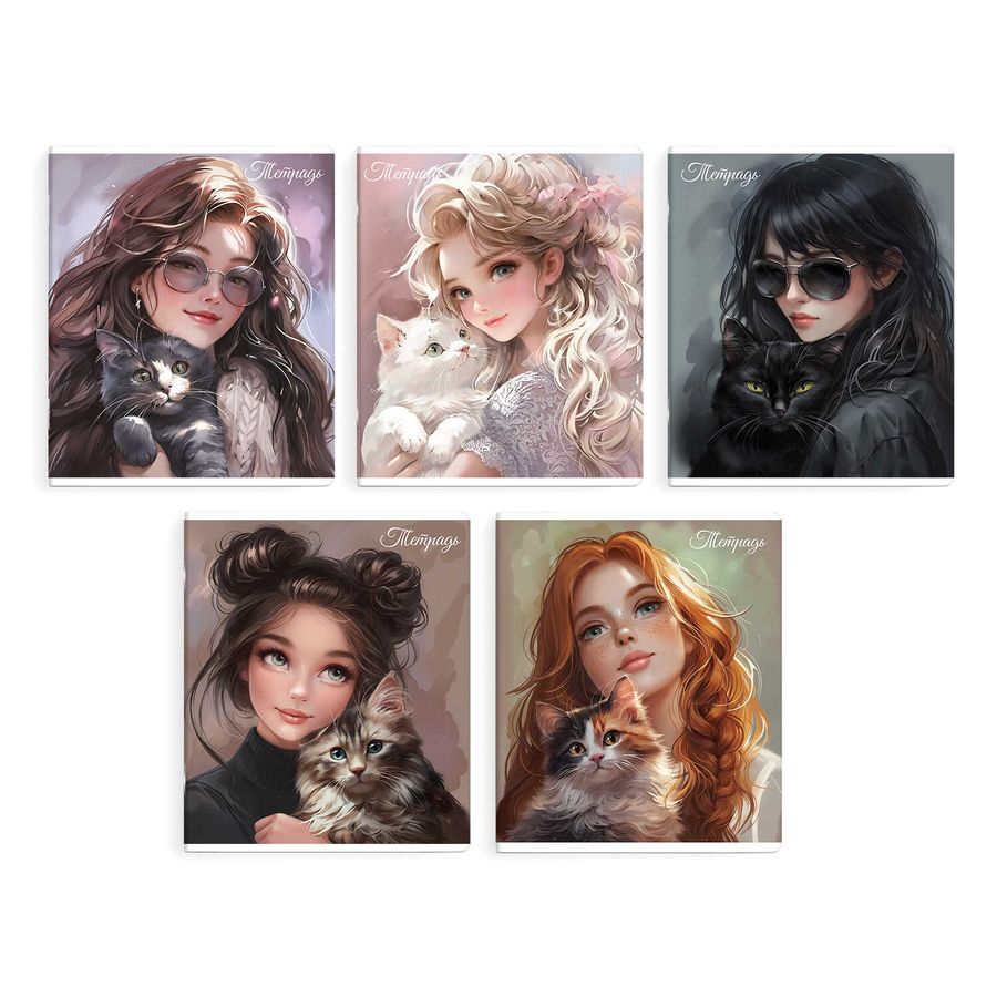 Тетрадь, 48 л, клетка, арт. 68547/ 5 КРАСОТКА С КОТИКОМ /А5+, мягкий переплёт (2 скобы), обложка - выборочный ТВИН лак, мелованный картон 190 г/м², упаковка ассорти.