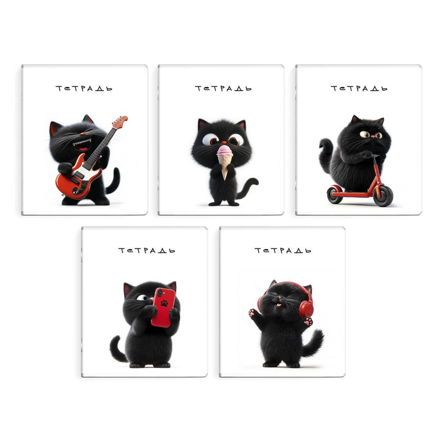 Тетрадь, 48 л, клетка, арт. 68551/ 5 ЧЕРНЫЙ КОТ /А5+, мягкий переплёт (2 скобы), обложка - выборочный ТВИН лак, мелованный картон 190 г/м², упаковка ассорти/
