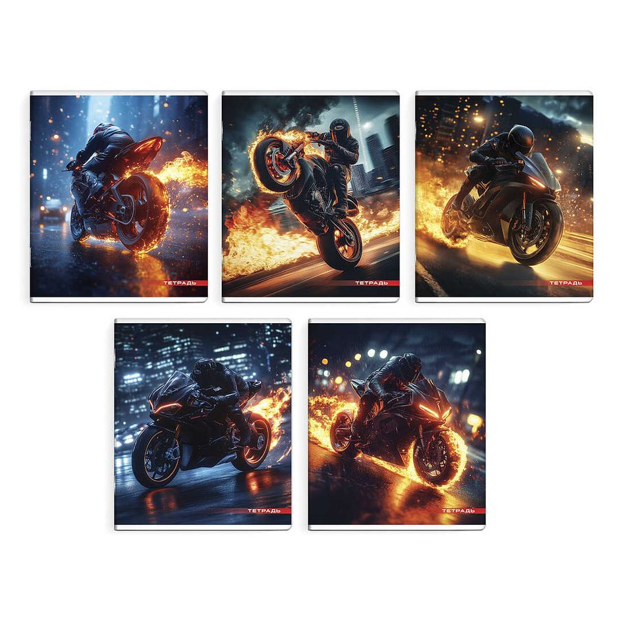 Тетрадь, 48 л, клетка, арт. 68557/ 5 ОГНЕННЫЙ БАЙК /А5+, мягкий переплёт (2 скобы), обложка - выборочный ТВИН лак, мелованный картон 190 г/м², упаковка ассорти/