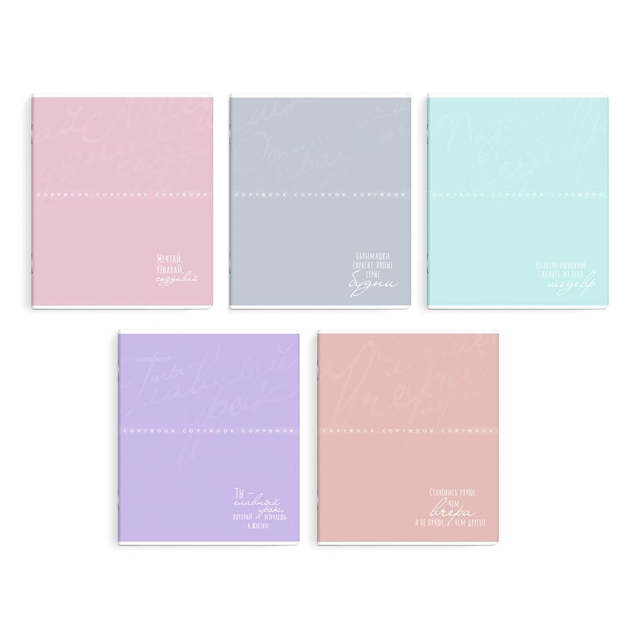 Тетрадь, 48 л, клетка, арт. 68566/ 5 НЕЖНЫЕ ЦВЕТА /А5+, мягкий переплёт (2 скобы), обложка - выборочный ТВИН лак, мелованный картон 190 г/м², упаковка ассорти/