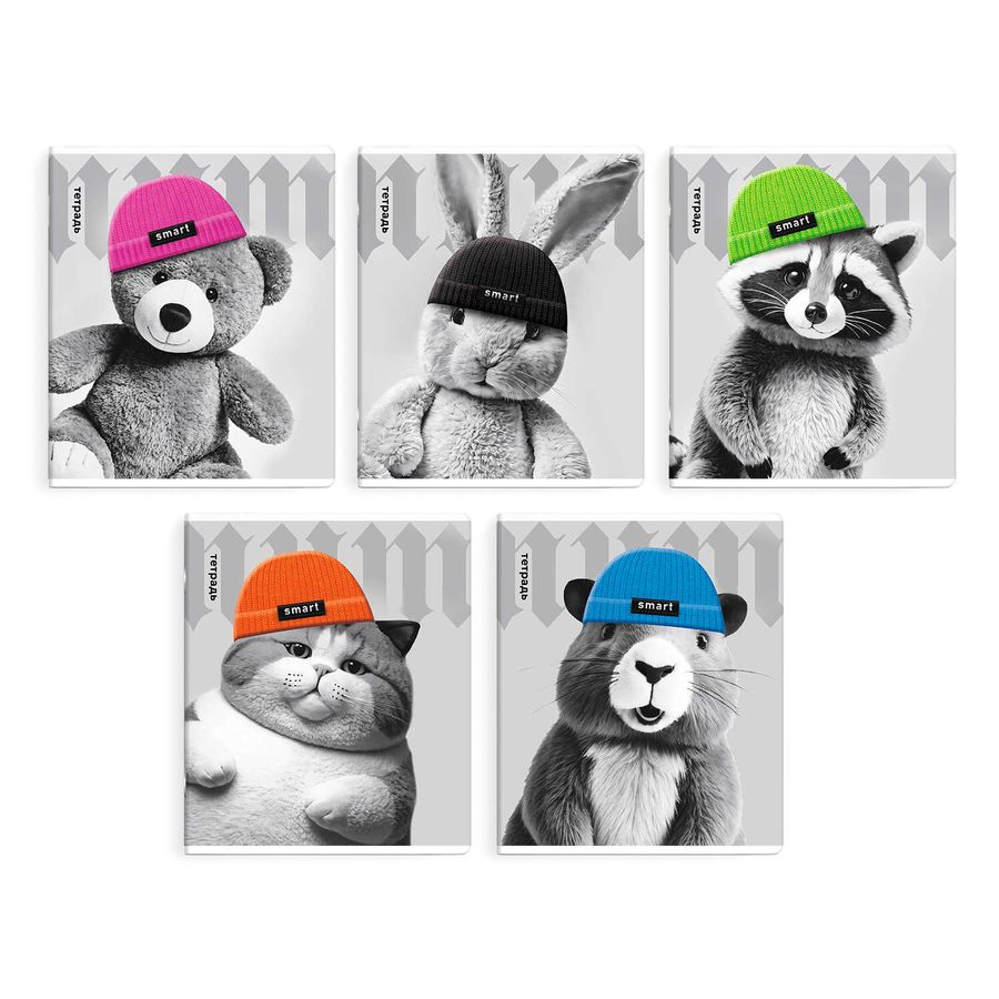 Тетрадь, 48 л, клетка, арт. 69682/ 5 ЗВЕРИ В ШАПОЧКАХ /А5+, мягкий переплёт (2 скобы), обложка - выборочный ТВИН лак, мелованный картон 190 г/м², упаковка ассорти/