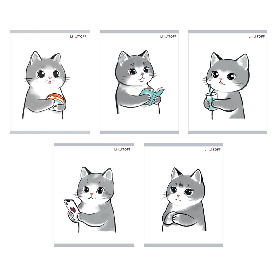 Тетрадь А5 40л клетка скрепка мелов.картон День котика ассорти 5 видов Listoff ТК409148
