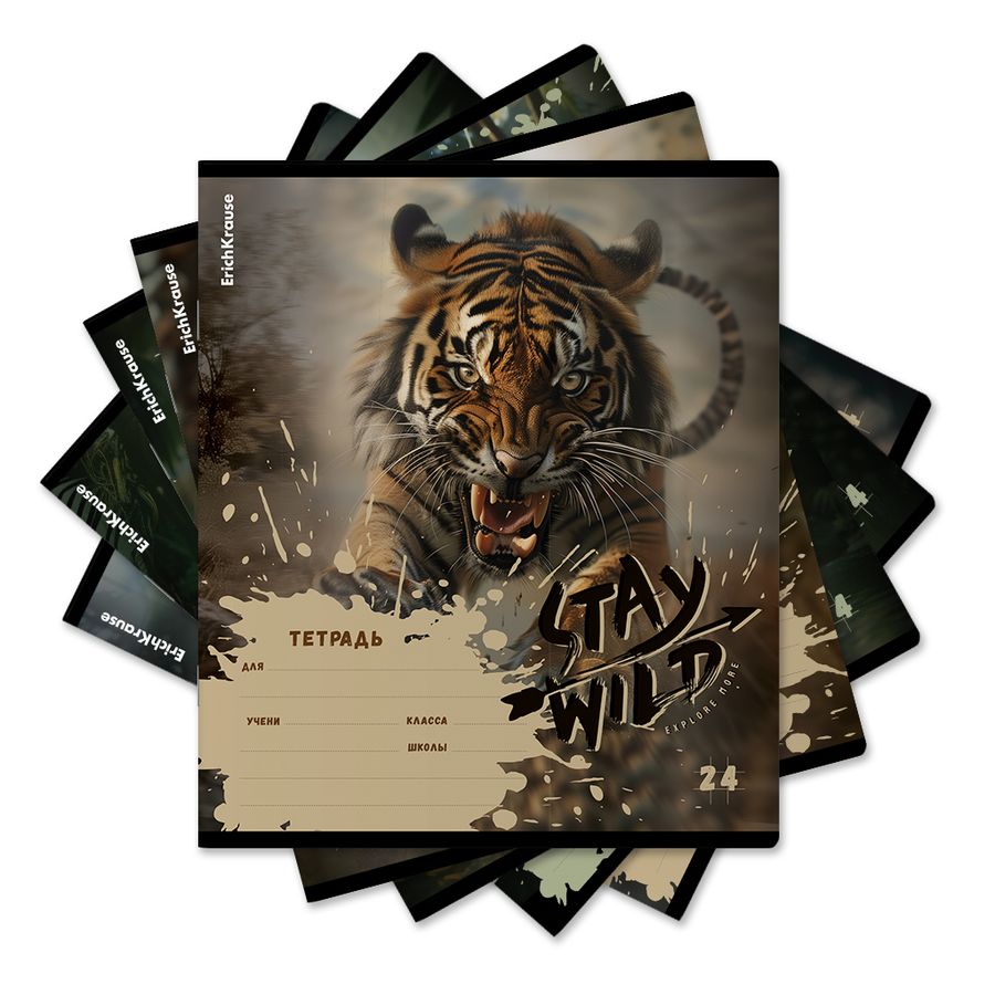 Тетрадь А5 24л клетка скрепка мелов.картон Stay Wild ассорти ERICH KRAUSE 63277
