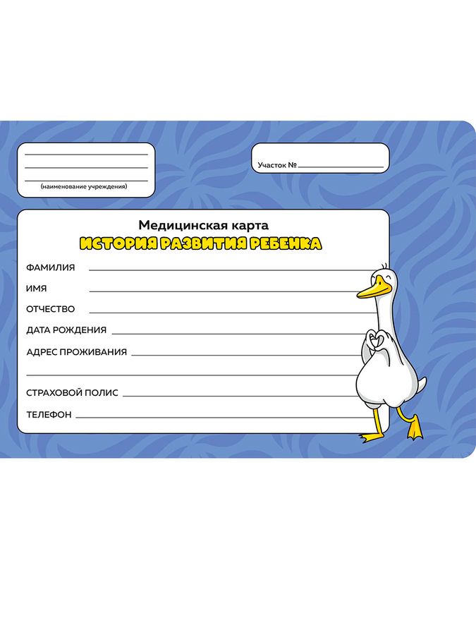 Медицинская карта необходима с рождения каждому малышу. Наша карта составлена по стандартной форме № 112/у История развития ребенка и содержит разделы для сведений о новорожденном, профилактических осмотрах, диагнозах, вакцинации и многом другом, а также большое количество дополнительных страниц. Благодаря твёрдой обложке карта прослужит долгие годы.